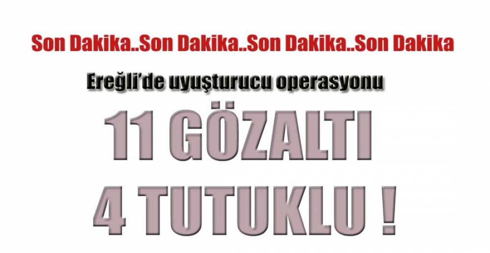 Kdz.Ereğli İlçe Emniyet Müdürlüğü Narkotik Büro Amirliği ekiplerince uyuşturucu ticaretine yönelik yürütülen operasyon kapsamında gözaltına alınan 11 şüpheliden 4’ü tutuklandı.