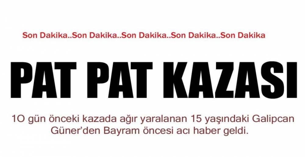 Pat pat kazası sonucu ağır yaralanan Galipcan Güner (15) hastaneye kaldırıldı. O günden bugüne kadar Zonguldak’ta yoğun bakımda yatan Güner, yapılan tüm müdahalelere rağmen kurtulamadı.