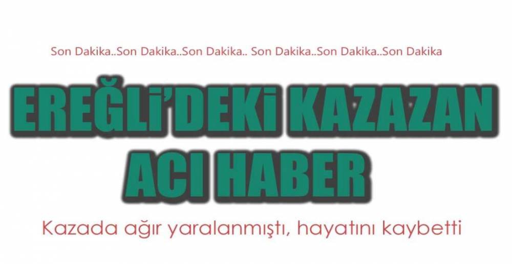 Ereğli`deki kazada ağır yaralanan sürücü hayatını kaybetti.